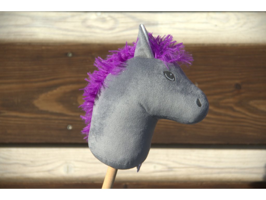 Violeta je MINI Hobby horse šedé barvy s výraznou fialovou hřívou.