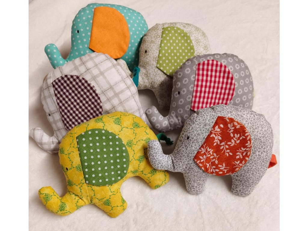 Zvířátko pro děti. Slon o velikosti 15 x 11 cm. Rozměry se mohou mírně lišit, protože se jedná o ruční práci. Do poznámky v e-shopu napište, kterého sloníka jste vybrali. Děkujeme