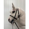 Uzdečka s anglickým nánosníkem a čelenkou s proužky.